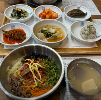 - 비빔밥 완성: 토렴된 밥 위에 신선한 육회와 함께 양념장을 올립니다. 참기름과 통깨를 넉넉히 뿌려줍니다. (육회와 밥을 비빌 때 육회는 차갑게 유지하는 것이 좋습니다.)