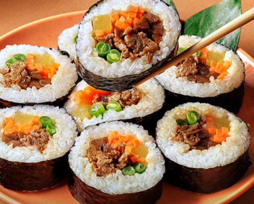 | 식물성 불고기 김밥 | 이노하스만의 식물성 대체육을 사용한 대표 메뉴 | 수출 주력 상품 |