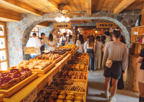 왓어브레드 용산점은 이촌시장에서 조금 떨어진 용산역 근처에 위치하고 있으며, '놀라운 토요일'을 통해 독특한 메뉴인 '인절미쿠루찌'로 큰 인기를 얻었습니다. 쿠루찌는 '크로아상'과 '모찌(찹쌀떡)'를 합친 신조어로, 겉은 크로아상처럼 바삭하지만, 한입 베어 물면 찹쌀 모찌의 쫄깃함이 쫙 늘어나는 반전 매력의 디저트입니다. 그중에서도 한국적인 맛을 더한 인절미쿠루찌는 콩가루의 고소함과 찹쌀의 쫄깃함, 크로아상의 버터 풍미가 완벽하게 조화를 이루며 남녀노소 모두의 입맛을 사로잡았습니다.