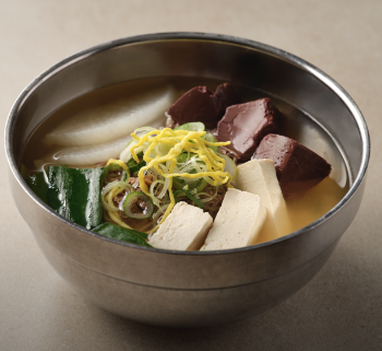 - 육수에 국간장과 소금으로 간을 하고, 으깬 두부와 삶은 선지를 넣어 한소끔 더 끓입니다.