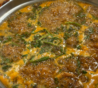- 오리고기가 부드럽게 익으면, 쑥을 한 움큼 넣고 살짝 더 끓여 향을 냅니다.