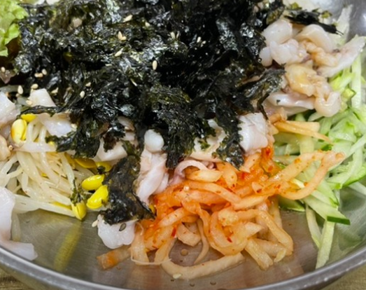 문어비빔국수 11,000원 새콤달콤한 양념장에 비벼낸 별미