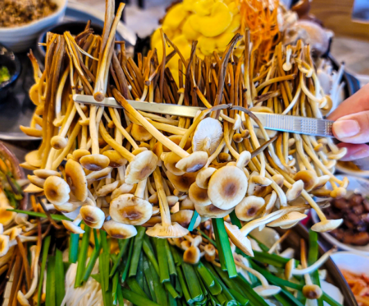 또 다른 별미는 26가지 약선버섯전골입니다. 이름만 들어도 건강해질 것 같은 이 메뉴에는 30가지 이상의 다양한 버섯이 들어갑니다. 버섯에서 우러나온 향긋한 육수가 일품이며, 채식을 선호하시는 분들이나 보양식이 필요한 분들에게 강력 추천합니다. 강화도 갈비젓국전골 만큼이나 인기가 많은 메뉴로, 강화도의 자연을 통째로 냄비에 담아냈다고 해도 과언이 아닙니다.