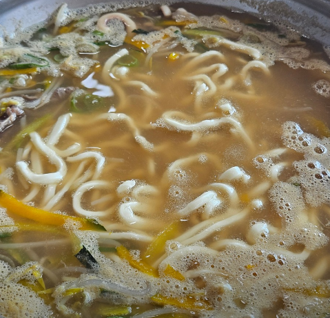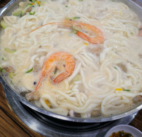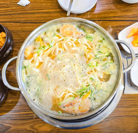 - 끓이기: 육수가 끓어오르면 해산물을 먼저 넣고 익힌 뒤, 칼국수 면과 단단한 채소(당근, 애호박)를 넣습니다.