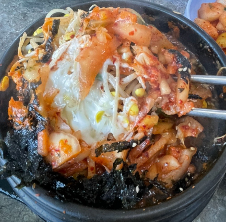 - 대파, 청양고추, 고춧가루를 올리고 달걀 하나를 톡 떨어뜨려 마무리합니다.
