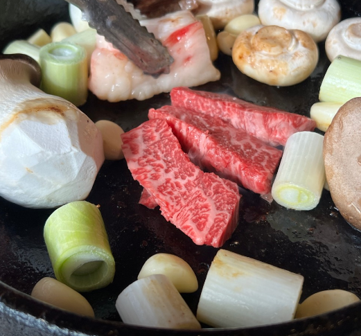 - 고기가 익으면 썰어둔 대파를 넣고 파 향이 올라올 때까지 충분히 볶습니다. 이것이 특수부위 기름과 대파의 만남입니다.
