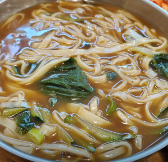 - 메인: 칼국수면 2인분 (생면 추천), 호박, 감자, 양파, 대파, 멸치 다시마 육수 1.5L