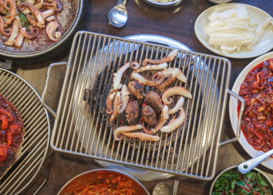 이곳의 가장 큰 특징은 가을 주꾸미를 포함한 제철 주꾸미를 생물 상태로 공수하여 신선하게 제공한다는 점입니다. 특히, 시그니처 메뉴인 '통주꾸미(생쭈꾸미구이)'는 싱싱한 활 주꾸미를 통째로 숯불에 구워 먹는 방식으로, 주꾸미 본연의 쫄깃한 식감과 깊은 감칠맛을 그대로 느낄 수 있습니다. 이는 일반적인 냉동 주꾸미 볶음과는 차원이 다른 경험을 선사합니다.