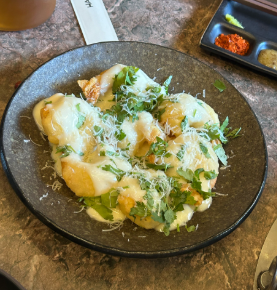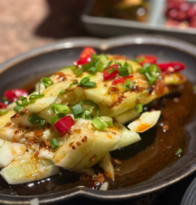 하오카오스탠의 원시 꼬치구이 세트는 여러 명이 함께 즐기기 좋은 메뉴로, 다양한 육류와 채소를 숯불에 구워 먹는 과정 자체가 즐거운 경험을 선사합니다. 특히 양갈비살과 양어깨살은 잡내 없이 부드러워 양고기를 처음 접하는 사람들도 부담 없이 즐길 수 있습니다. 이 외에도 시원한 고기 빙수, 쫀득찹쌀탕수육 등 이색적인 중식 기반의 사이드 메뉴들이 원시 꼬치구이와 훌륭한 조화를 이룹니다.