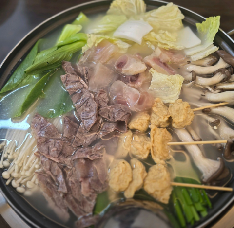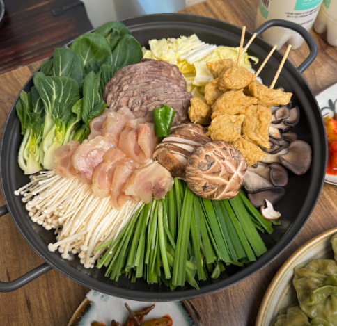 - 3. 채소 손질: 배추, 청경채, 버섯(느타리, 표고, 팽이), 쑥갓을 깨끗이 씻어 먹기 좋은 크기로 썰어둡니다.