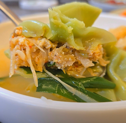 - 2. 만두 빚기: 다진 돼지고기, 두부, 부추, 숙주나물을 섞어 속을 만듭니다. 만두피 중앙에 속을 넣고 윗부분을 주름 잡아 묶어 합정동 복주머니만두전골 특유의 모양을 만듭니다.