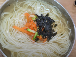 - 완성: 그릇에 면을 담고 뜨거운 육수를 부은 후, 준비된 고명과 김가루를 올리고 양념장을 곁들입니다.