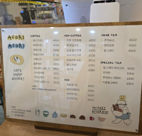 | 아메리카노 | 4,000원 ~ 5,000원 | 가장 기본적인 카페 메뉴 |