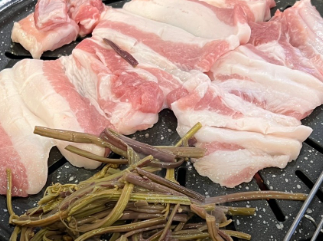 - 프라이팬이나 그릴을 중약불로 예열합니다. 양념 돼지갈비는 양념 때문에 쉽게 타므로 불 조절이 중요합니다.
