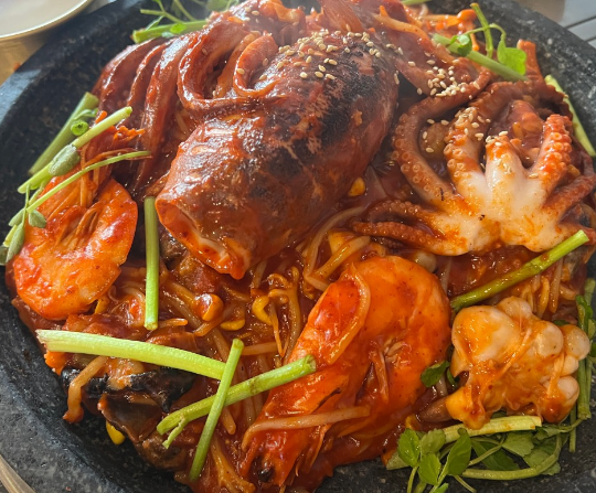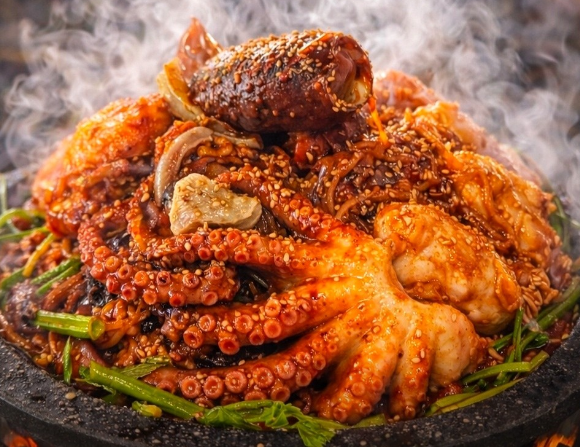 | 돌판 해물아귀찜 요리 한 상 | 갑오징어, 낙지, 전복, 아귀 등 신선한 해물이 가득한 대표 메뉴 | 55,000원 |