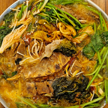 - 해물뼈찜 조리: 삶은 돼지 등뼈와 데친 해산물(오징어, 콩나물, 미나리 등)을 준비합니다. 넓은 냄비에 뼈와 해물, 채소를 담고 양념장을 넣어 센 불에서 빠르게 볶아줍니다. 콩나물에서 수분이 나오므로, 양념이 잘 배도록 뒤적이면서 조리합니다.