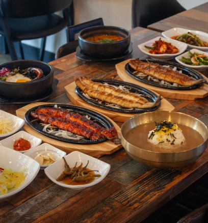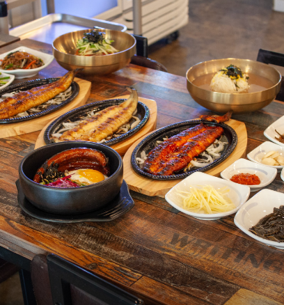 또한, 평소 양념을 선호하시는 분들이라면 간장양념장어구이 역시 놓칠 수 없는 메뉴입니다. 장수장어만의 비법 간장 소스는 너무 달지도 짜지도 않게 장어와 완벽한 균형을 이룹니다. 가수 나상도님이 왜 이곳을 스타밥집으로 선정했는지 직접 맛을 보면 고개가 끄덕여집니다. 김포 소금장어구이 한 점을 입에 넣는 순간, 입안 가득 퍼지는 담백한 육즙과 함께 기력이 샘솟는 기분을 느끼실 수 있을 것입니다. 간장양념장어구이 또한 부드러운 살결 속으로 스며든 양념이 조화를 이루어 밥 한 공기는 순식간에 비우게 만듭니다.
