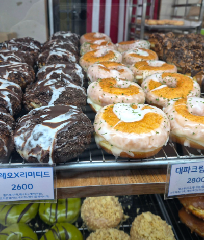 이곳의 메뉴 구성은 기본에 충실하면서도 트렌디한 맛을 놓치지 않았습니다. 수원 경기도를 평정한 도넛 달인의 대표 메뉴들은 화려하면서도 깊은 맛을 냅니다. 가장 기본이 되는 슈퍼글레이즈는 입안에서 사르르 녹는 달콤함이 특징이며, 호머심슨은 눈으로 보는 즐거움과 함께 진한 풍미를 선사합니다. 또한 아메리카버터넛은 고소한 풍미를 좋아하시는 분들에게 강력하게 추천하는 메뉴입니다.