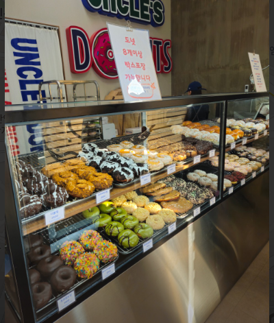 수원 경기도를 평정한 도넛 달인이 운영하는 엉클스 도넛은 문을 여는 순간부터 달콤하고 고소한 향기로 가득합니다. 가게 안으로 들어서면 진열대에 놓인 알록달록하고 먹음직스러운 도넛들이 가장 먼저 시선을 사로잡습니다. 이곳의 셰프는 40대의 젊은 나이임에도 불구하고 빵에 대한 깊은 연구를 통해 자신만의 독자적인 레시피를 구축했습니다. 왜 많은 사람이 오픈런을 감행하면서까지 이곳을 찾는지, 한 입 베어 무는 순간 바로 이해하게 됩니다.