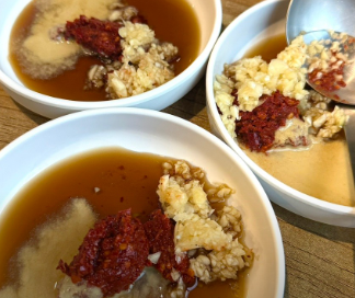 - 양념장 만들기: 다진 마늘, 간장, 고춧가루, 식초, 연겨자를 섞어 특제 양념장을 만듭니다. (식초와 겨자를 넣어 새콤하게 만드는 것이 닭한마리 양념장의 핵심입니다.)