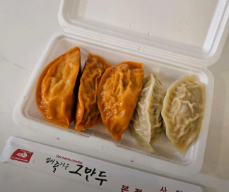 섞은만두 | 6,000원 | 매운맛과 안 매운맛을 반반 섞은 구성. |