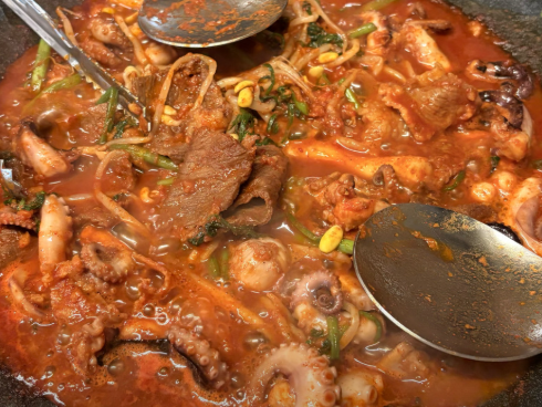 특히 이곳은 메인 메뉴인 쭈꾸미철판과 묵은지삼겹철판 외에도 스지, 양 등 특수 부위를 활용한 모둠 철판 요리인 '용녀모둠철판' 등으로도 유명합니다. 직장인들이 많은 영등포 지역 특성상, 점심 특선부터 저녁 회식 메뉴까지 폭넓게 갖추고 있어 언제 방문해도 만족스러운 식사를 할 수 있습니다.