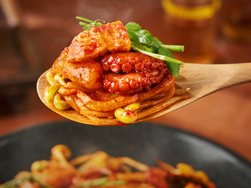 | 쭈꾸미철판 | 매콤 달콤한 숙성 양념장을 흠뻑 입은 쭈꾸미철판. 콩나물과 향긋한 미나리가 더해져 깔끔한맛 | 14,000원 |