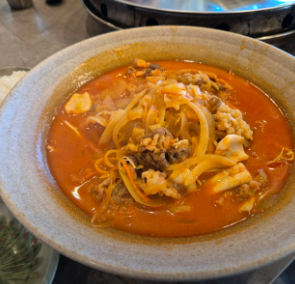 - 핵심 재료: 돼지 등뼈/사골 육수(또는 닭 육수), 해물 (건홍합, 건새우), 고춧가루, 다진 마늘, 양파, 대파, 굴소스, 간장