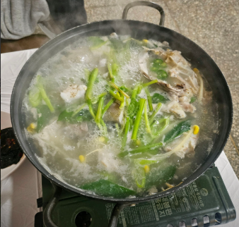 5. 마무리: 마지막에 대파, 청양고추, 미나리를 넣고 살짝만 끓인 후 불을 끕니다. 시원하고 깔끔한 생대구탕 스타일의 맑은 해물탕이 완성됩니다. 삼숙이매운탕, 곰치국, 생대구탕 중에서도 가장 맑은 국물을 자랑하는 생대구탕의 시원함을 집에서 느껴보세요.