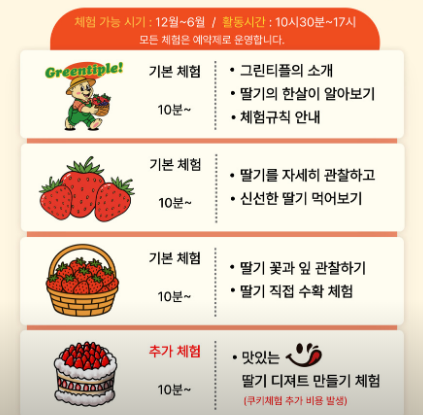 안산 여행의 정점은 바로 달콤한 그린티플 딸기수확체험 코스입니다. 아이들과 함께 직접 딸기를 따보는 딸기수확체험 활동은 정서적으로도 매우 유익한 시간입니다. 그린티플 농장에서 진행되는 딸기수확체험 프로그램은 신선한 딸기를 그 자리에서 맛볼 수 있어 만족도가 아주 높습니다. 딸기수확체험 참여를 위해서는 미리 예약을 진행하는 것이 안전합니다. 많은 분이 딸기수확체험 방문 후 직접 딴 딸기로 디저트를 만들어 먹는 즐거움에 푹 빠져 있습니다. 그린티플 시설은 딸기수확체험 환경이 쾌적하게 조성되어 있어 누구나 쉽게 즐길 수 있습니다. 딸기수확체험 하면서 자연의 소중함을 배우고, 딸기수확체험 잊지 못할 추억을 사진으로 남겨보세요. 딸기수확체험 프로그램은 시즌별로 운영되니 사전에 확인이 필요합니다. 그린티플에서 진행하는 딸기수확체험 시간은 정말 빠르게 지나갈 만큼 즐겁습니다. 딸기수확체험 통해 얻은 신선한 딸기는 정말 달콤합니다. 딸기수확체험 즐거운 시간을 그린티플에서 경험해 보시길 바랍니다.