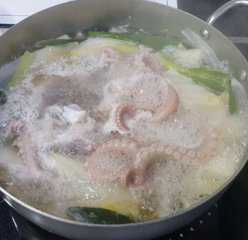 - 낙지 넣기: 국물이 팔팔 끓을 때 손질한 낙지를 통째로 넣습니다. 너무 오래 익히면 질겨지므로 주의하세요.