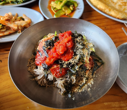 오랜 세월 동안 변치 않는 손맛으로 메밀 요리를 선보여 온 이곳은 단순한 한 끼 식사를 넘어, 강원도의 정서와 깊은 정을 나누는 공간입니다. 이곳의 대표 메뉴인 막국수는 메밀의 구수한 풍미와 담백한 육수가 일품이며, 특히 할머니들의 정성이 담긴 육수는 많은 단골 손님들이 이곳 검산 막국수를 찾는 이유입니다.