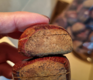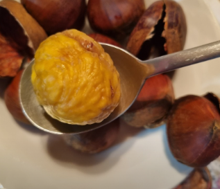 - 이렇게 찌면 칼집을 따라 속껍질이 쏙 분리되어 껍질을 까기 매우 쉽고, 촉촉한 찐밤을 맛볼 수 있습니다. 공주 밤은 찐밤으로도 훌륭합니다.