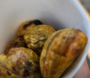 - 중간에 한 번 흔들어주면 더욱 고르게 익힐 수 있습니다. 껍질이 벌어지면서 노릇하게 구워지면 완성입니다.