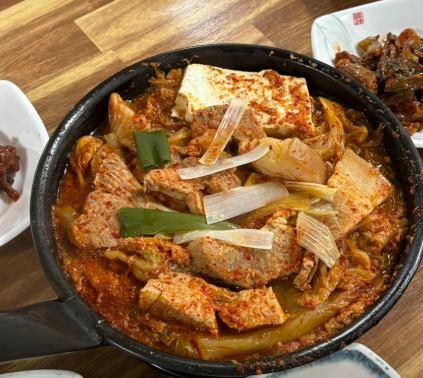 이곳의 시그니처 메뉴는 바로 김치찌개 백반입니다. 특히, 넓적한 프라이팬에 묵은지와 두툼한 돼지고기를 넣어 끓여 먹는 독특한 방식과, 전라도 특유의 15가지 이상 푸짐하게 차려지는 밑반찬이 이 김치찌개 백반의 핵심입니다. 운전기사님들의 소울푸드에서 시작해 이제는 순천을 찾는 관광객들의 필수 코스가 된 진일기사식당의 김치찌개 백반 정보를 상세히 알아보겠습니다.