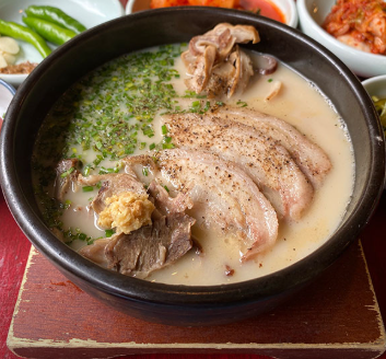 - 양념 및 마무리: 뚝배기에 밥과 고기를 담고 뜨거운 사골곰탕 육수를 부어줍니다. 다대기(양념장), 새우젓, 부추, 다진 마늘 등을 기호에 맞게 올려 돼지국밥처럼 즐깁니다.