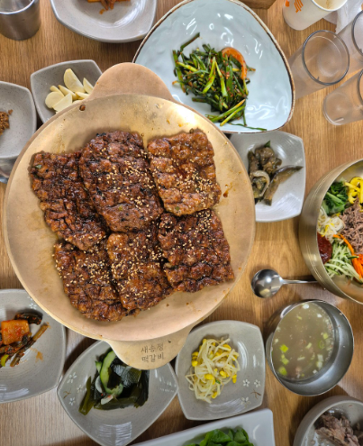 셋째, 완벽한 궁합의 뼛국 서비스입니다. 떡갈비만으로도 훌륭하지만, 무한 리필이 가능한 맑고 시원한 뼛국은 새송정떡갈비의 시그니처나 다름없습니다. 이 뼛국과 떡갈비의 조합은 그 어디에서도 경험하기 힘든 환상의 맛입니다.