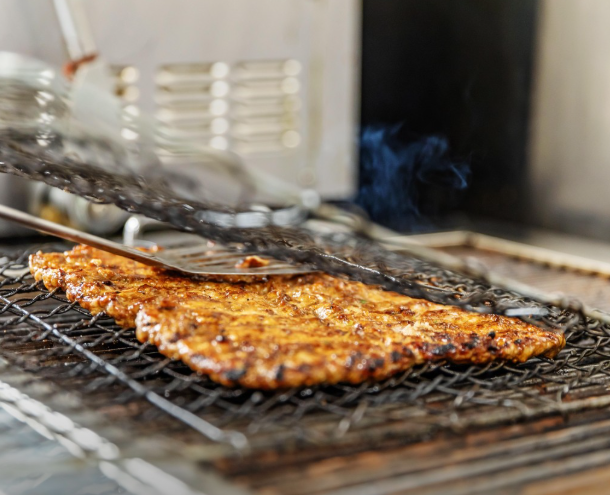 첫째, 떡갈비 명인의 노하우가 담긴 양념입니다. 간장, 과일, 채소 등을 넣어 장시간 달여 만든 특제 양념은 고기의 맛을 해치지 않으면서도 깊고 은은한 단맛을 냅니다. 둘째, 정성 가득한 수제 방식입니다. 고기를 기계로 갈지 않고 일일이 다져 뼈에 붙여내는 전통 수제 방식은 떡갈비 특유의 부드러우면서도 씹는 맛이 살아있는 식감을 만들어냅니다.
