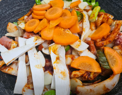 - 양파, 당근, 대파, 청양고추 등 채소를 먹기 좋게 썰어 준비합니다.