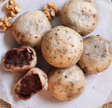 충북 영동의 구름마을사람들영농조합은 영동 지역 특산물인 호두를 활용하여 '호구빵(호두찐빵)'을 만듭니다. '호구빵'은 영동산 호두와 국산 팥을 넣어 만든 수제 찐빵으로, 쫄깃한 반죽과 달지 않은 팥소, 그리고 호두의 고소함이 조화로운 별미입니다. 원가 비중이 높아도 100% 영동산 호두를 고집하는 정직한 맛이 특징입니다.
