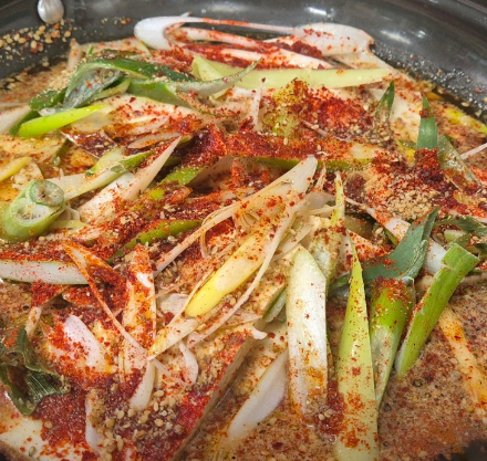 - 국물이 거의 줄어들면 대파와 고추를 넣고 마지막에 들기름을 한 바퀴 둘러 풍미를 더합니다.