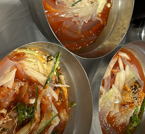- 양념장: 고추장 2큰술, 고춧가루 1큰술, 식초 3큰술, 설탕 2큰술, 다진 마늘 1작은술, 참기름 1큰술, 통깨