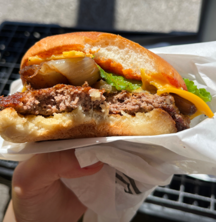 - 그 위에 치즈가 녹아내린 뜨거운 패티를 올립니다. (노머시버거처럼 심플하게)