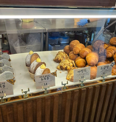 이와 함께 이곳을 베이커리 성지로 만든 주역은 바로 수많은 종류의 크루아상입니다. 플레인 크루아상은 물론, 앙버터, 말차, 솔티캬라멜, 생크림딸기 등 끊임없이 새로운 맛의 크루아상을 개발하여 방문할 때마다 새로운 즐거움을 선사합니다. 소금빵과 크루아상은 물론, 최근 유행하는 뉴욕롤과 신선한 샌드위치까지 준비되어 있어 브런치나 간단한 식사로도 손색이 없습니다. 포장 전문 매장으로 운영되지만, 그 맛을 보기 위해 많은 사람들이 줄을 서서 기다릴 정도로 인기가 대단합니다.