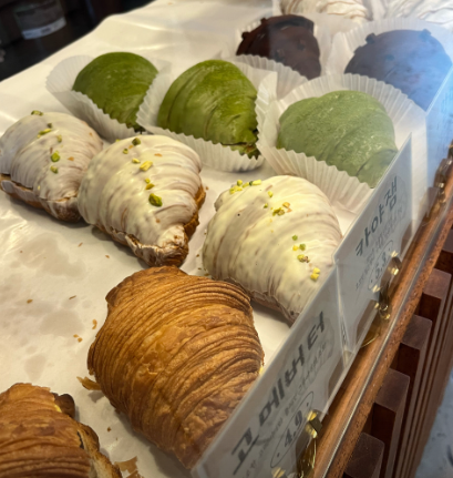 둘째, 예술적인 크루아상 라인업입니다. 단순한 플레인 크루아상을 넘어, 다양한 재료를 접목한 크루아상들은 하나의 작품과 같습니다. 특히 딸기 크루아상은 비주얼과 맛 모두 훌륭해 선물용으로도 인기가 높습니다.
