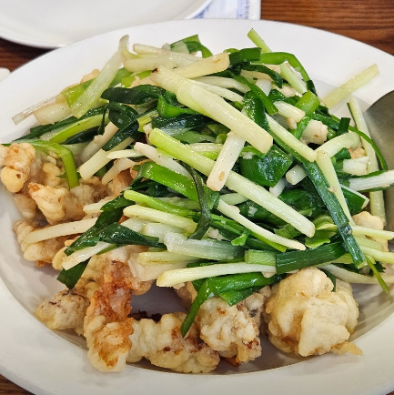 이곳의 상징과도 같은 부추복어살은 메뉴판을 펼치자마자 가장 먼저 주문해야 할 필수 코스입니다. 갓 튀겨져 나온 복어 살 위에 신선한 부추가 듬뿍 올라가 있는 비주얼은 식욕을 자극합니다. 보통 복어는 탕으로만 생각하기 쉽지만, 이곳 마포 부추복어튀김 중식당 대표 메뉴인 부추복어살을 맛보면 생선 튀김의 새로운 지평을 경험하게 될 것입니다. 튀김의 느끼함을 부추가 산뜻하게 잡아주어 마지막 한 점까지 물리지 않고 즐길 수 있습니다.