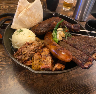 스모크 트레인 혜화본점의 대표 메뉴는 여러 가지 훈연된 고기를 한 번에 맛볼 수 있는 플래터입니다.