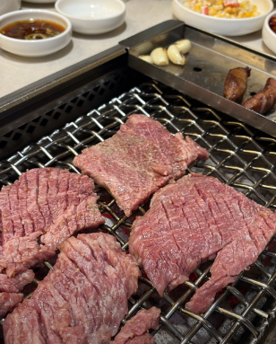 • 4. 굽기 기술: 팬을 강하게 달군 뒤 고기를 올립니다. 센 불에서 육즙을 가두며 빠르게 구워내는 것이 강남 소고기, 우설, 양념소금갈비 핵심입니다.