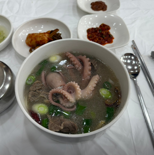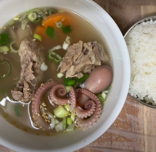 - 재료: 소갈비 500g, 산낙지 1~2마리, 무 1/4개, 대파, 마늘, 국간장, 소금