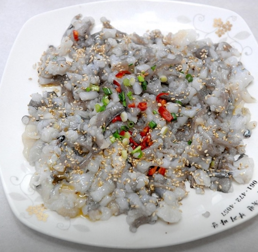 - 2. 산낙지는 소금이나 밀가루로 씻어낸 뒤 칼로 잘게 다집니다(탕탕이).
